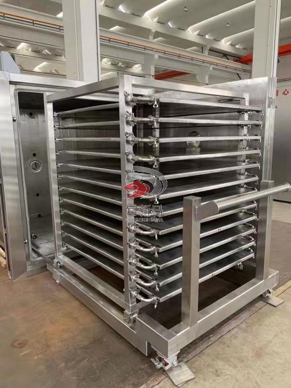 板層加熱:板層平面度1mm,料盤與板層緊密貼合,傳熱效率高;中空的隔板設(shè)計,是板層加熱均勻,溫度均勻性±1.5℃,保證物料干燥一致性;